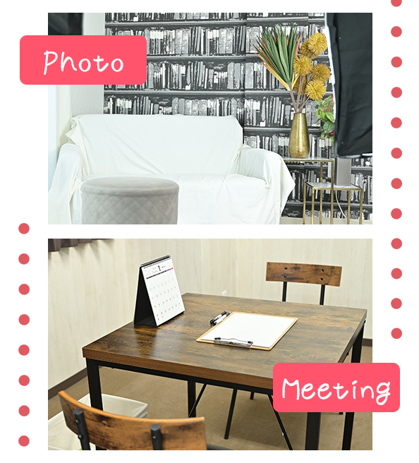 分煙待機、シャワー、洗濯機、お菓子、ドリンク、撮影ルーム…